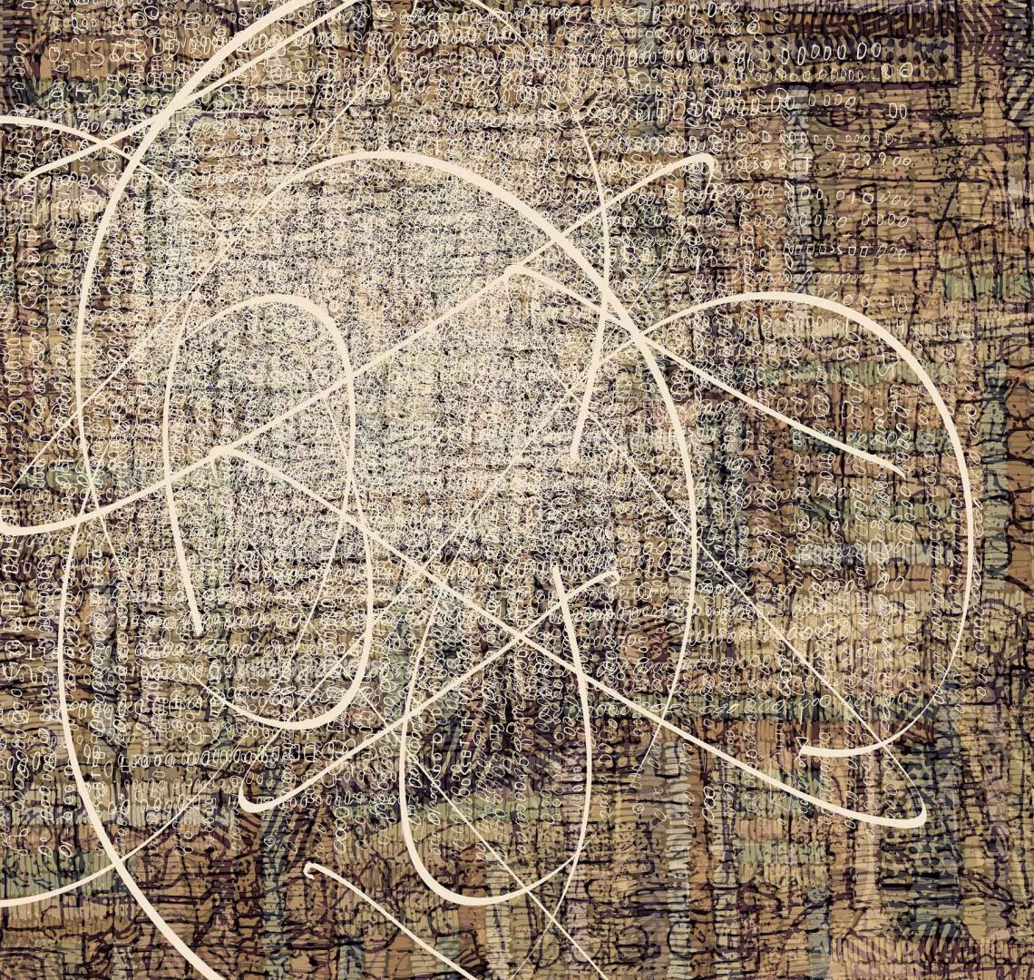 Композиция, вдъхновена от полета на светулките в лятна нощ, обогатена графично с многослоен фон. Топлата цветна гама създава чувство за хармония и уют.