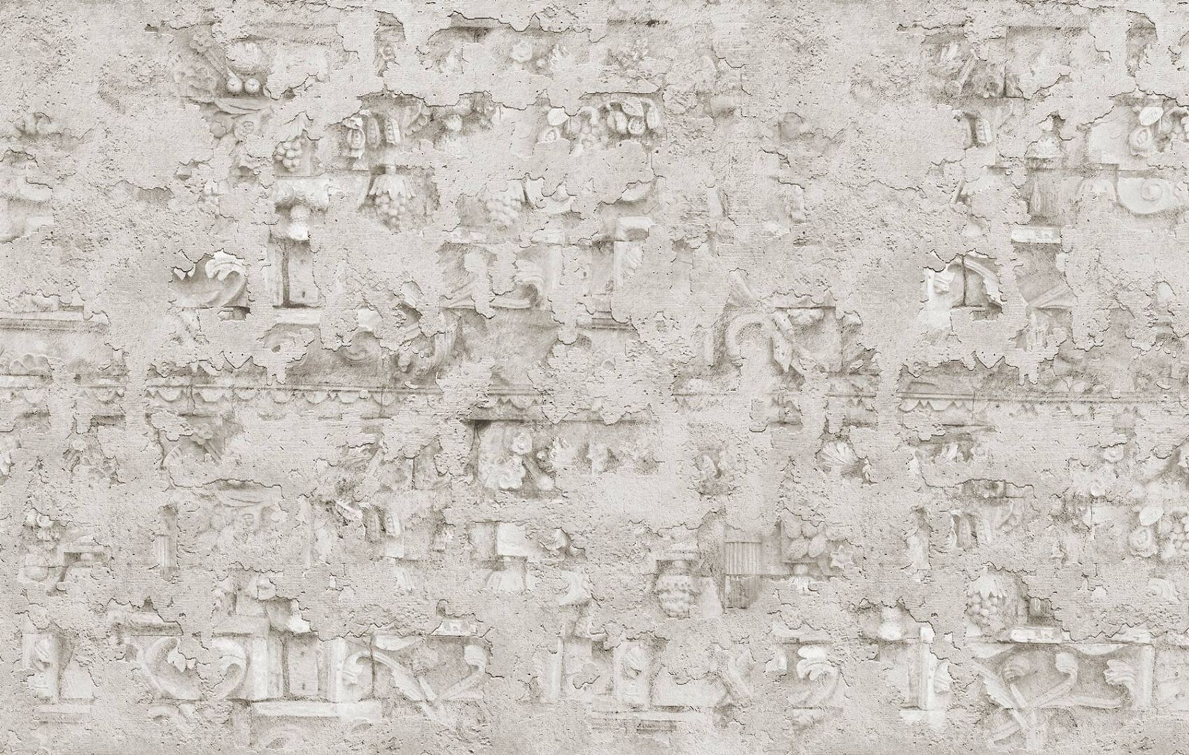 Този дизайнерски тапет е изграден на база триизмерни ефекти създадени от грубо напластена гладка мазилка, под която прозират в дълбочина антични мраморни елементи.