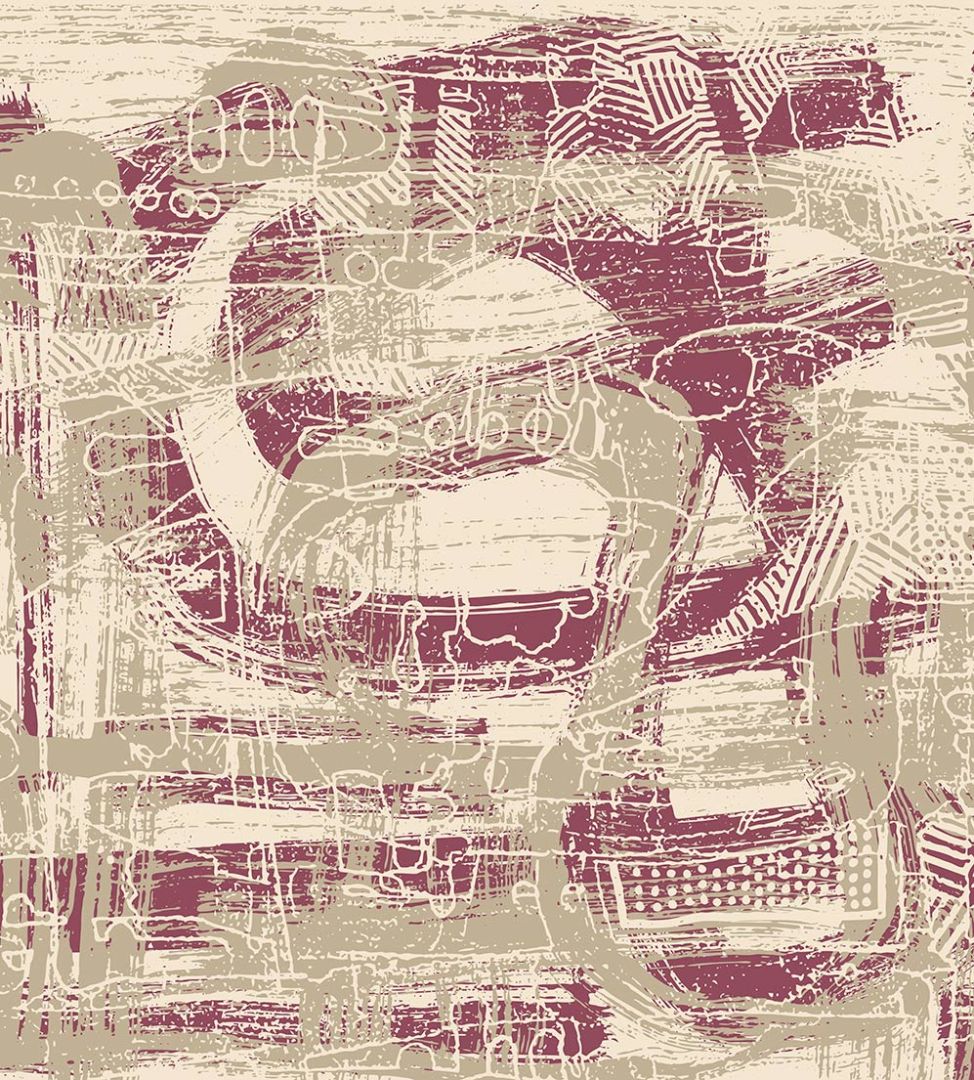 Този дизайнерски тапет е абстрактна композиция с масивни цветни следи и нежни рисунки в бяло. Повдига настроението и придава артистична нотка на интериора.