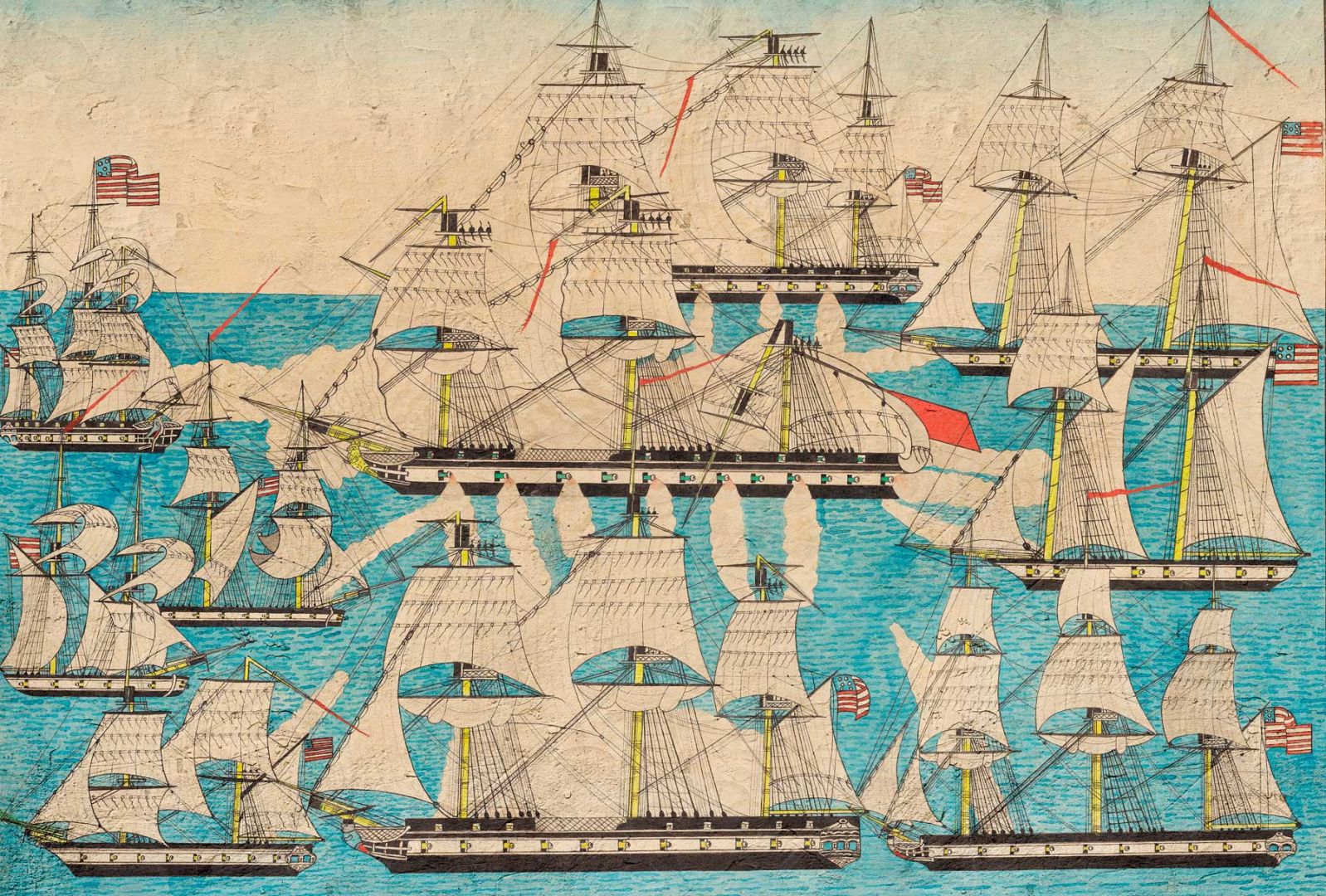 В бушуващото море всеки залп на флотилиите отразява драматизмът и съдбовността на епохата. Визията е свързана с историческо събитие - сражение, което се е случило на 17 юни 1815 г. между военноморските сили на Съединените щати и алжирския флот по време на Втората берберска война.