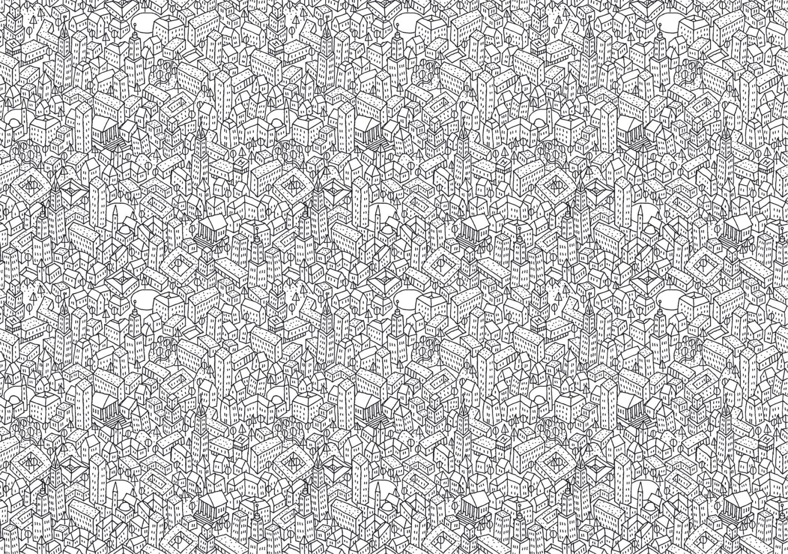 Тази черно бяла рисунка в стил комикс на центъра на вековен град носи спокойствие и хармония. Поставен в детска стая, тоси тапет би могъл да послужи като стена за оцветяване и забавление на малките. Визията е подходяща за всеки модерен интериор.