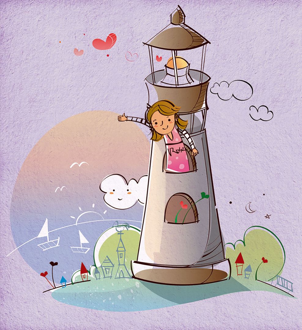 Тази рисунка на малката Роза от морския фар, която се радва на вълните, облаците и птиците е очарователно допълнение към стаята на всеки малчуган.