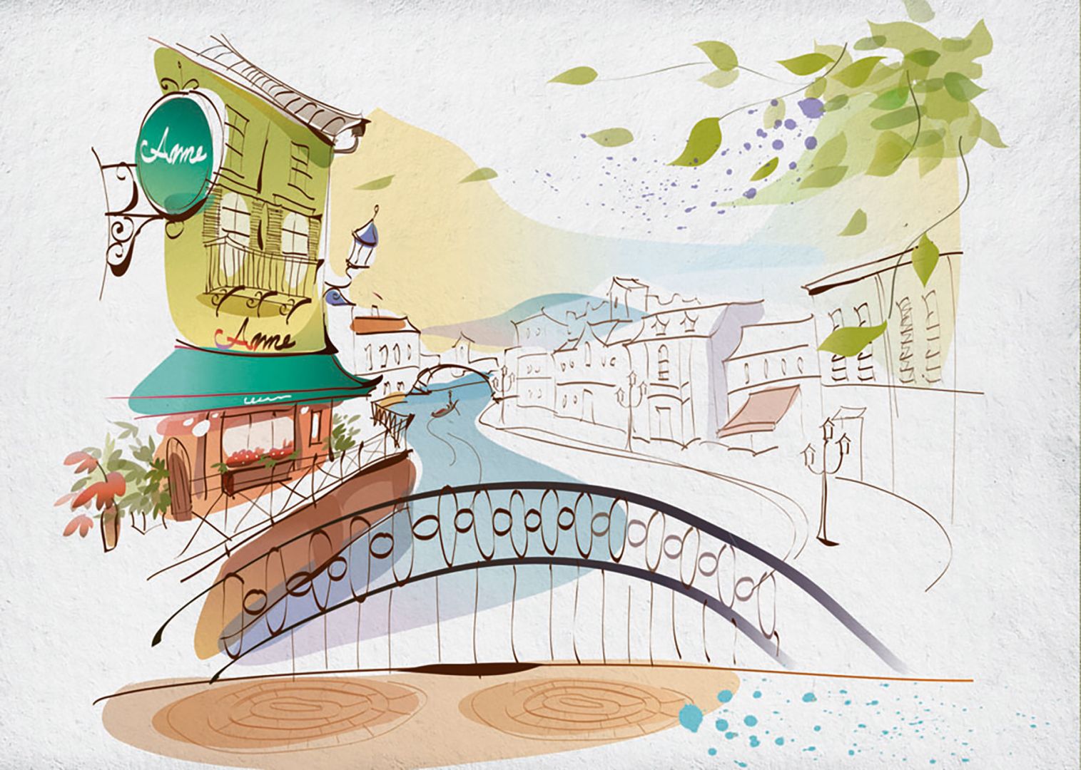 Тази рисунка напомняща френската провинция с кокетна сладкарница на преден план внася нотка на слънчево настроение и спокойствие във вашия дом. Светлите пастелни тонове са подходящи за романтично настроени хора.